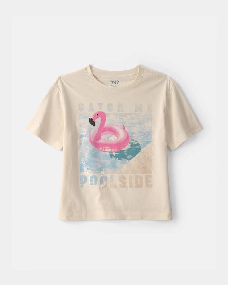 Girls 'Catch Me Poolside' Flamingo Graphic Tee - Cream