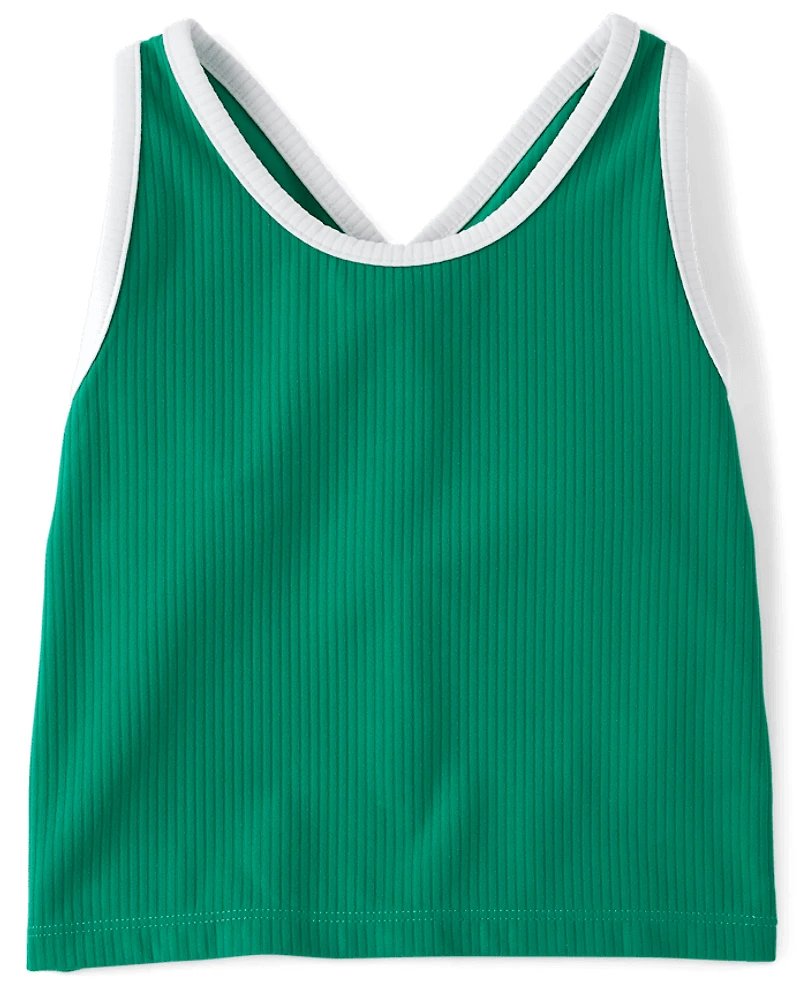 Girls Contrast Ribbed Cross Back Tank Top