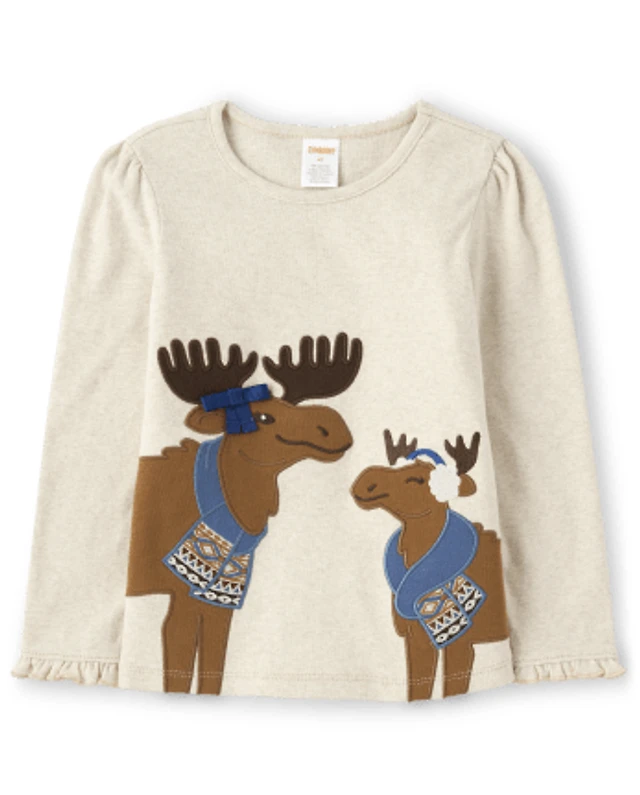 Girls Embroidered Moose Top - Montana Mountain