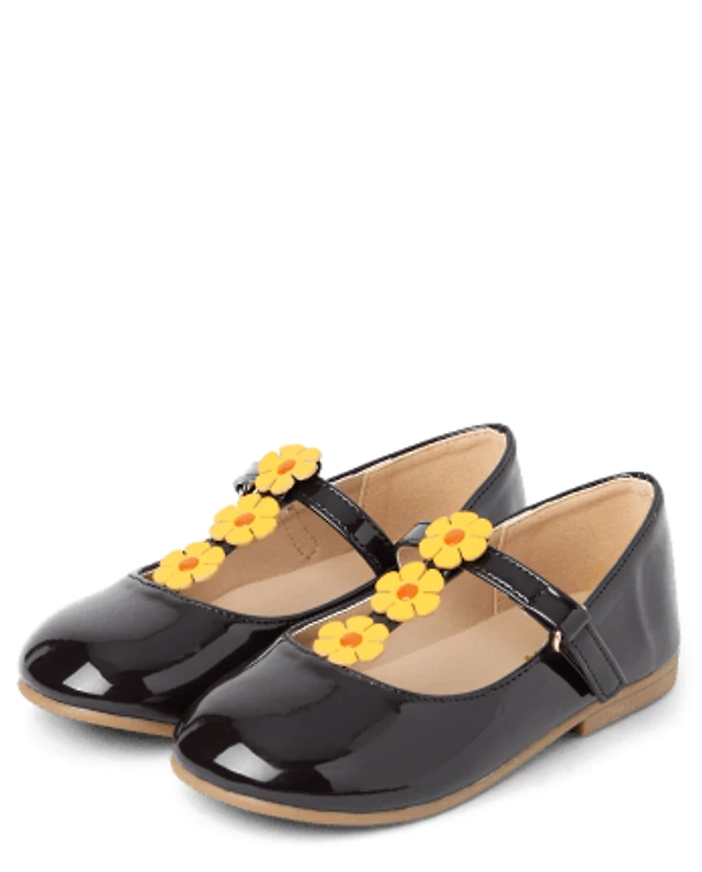 Girls Floral T-Strap Ballet Flats - Happy Harvest