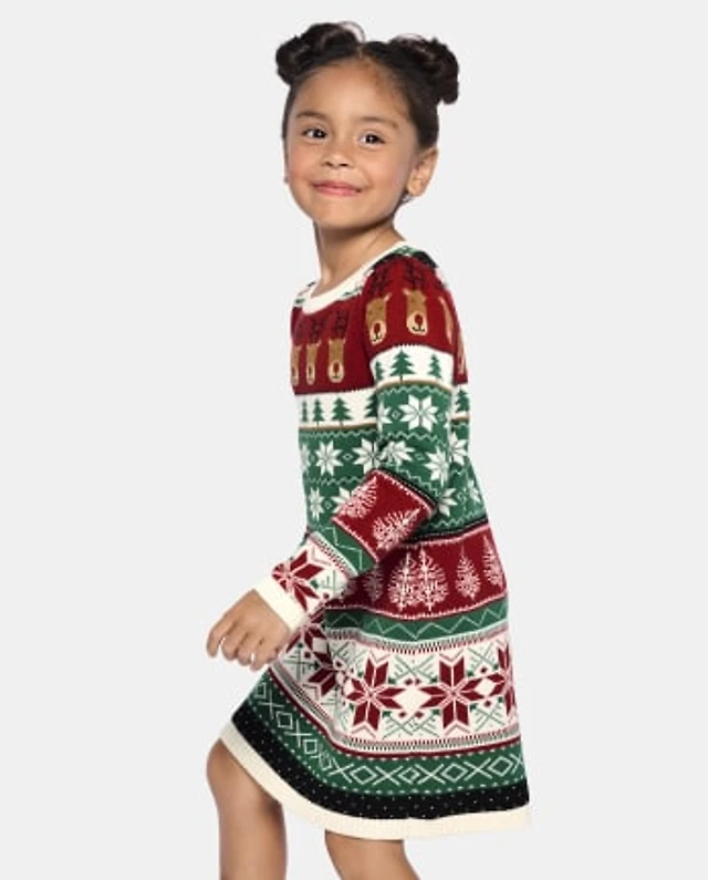 Girls Intarsia Fairisle Sweater Dress - Christmas Cabin