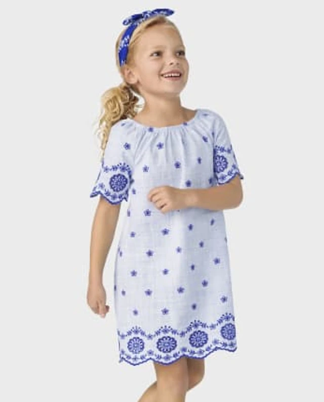 Girls Mommy And Me Eyelet Shift Dress - Bon Voyage