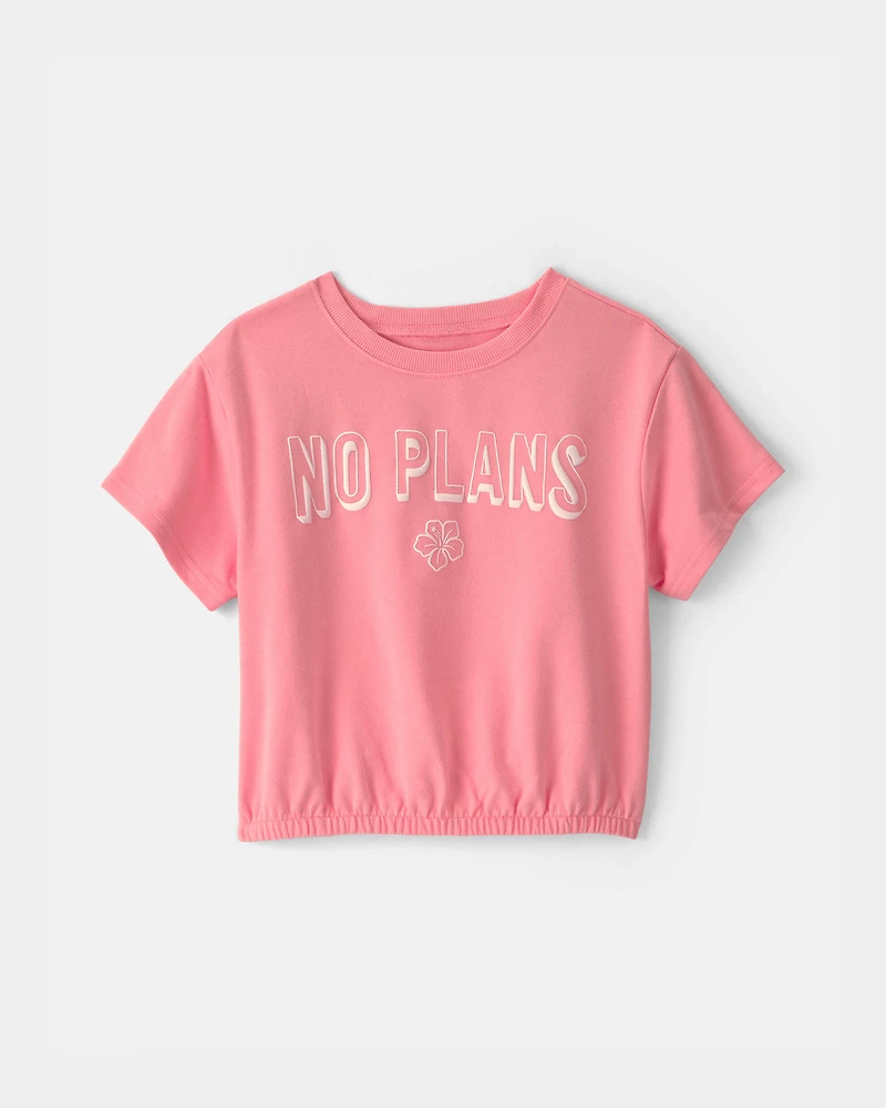 Embrace effortless style with this charming pink top, designed for comfort and ease. Made from soft French terry, it feels great against the skin. The playful "No Plans" graphic adds a fun touch, making it an ideal choice for casual outings or lounging at home. Its relaxed fit ensures easy dressing, while the vibrant colour brightens any wardrobe. Elevate your child's everyday look with a piece that combines fashion and functionality seamlessly.