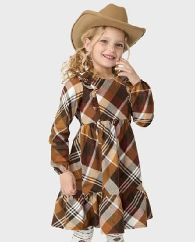 Girls Plaid Twill Tiered Dress - Montana Mountain
