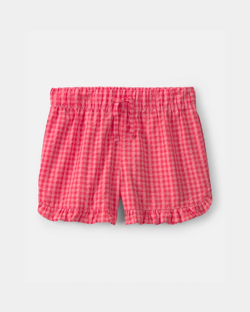 Girls Ruffle-Trim Gingham Shorts - Red