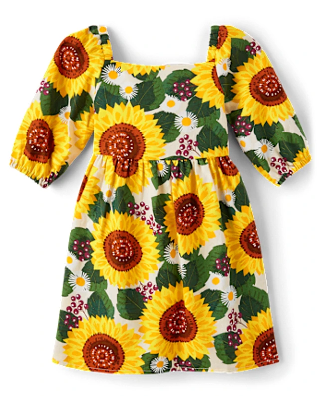 Girls Sunflower Flannel Fit And Flare Dress - Autumn Adventures