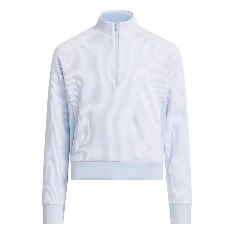 Upgrade your young golfer's wardrobe with the Girls Textured Quarter Zip, designed to blend style and functionality on the course. Made from a soft double knit fabric, this sweatshirt combines comfort with a seersucker-style textured material that adds a touch of sophistication to any outfit. Whether for a morning round or spending an afternoon at the clubhouse, this model offers both style and comfort. The standard fit allows for unrestricted movement, essential for a full swing, while the quarter-zip closure provides adjustable ventilation, perfect for adapting to changing weather conditions on the course.