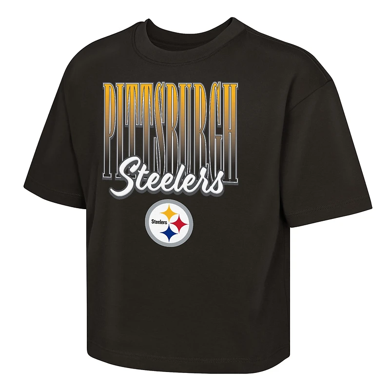 Girls Youth Outerstuff Black Pittsburgh Steelers Big City Boxy T-Shirt
