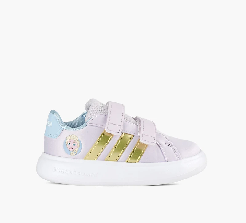 Designed with little adventurers in mind, the adidas Disney Frozen Grand Court 3.0 Shoes for Infants are easy-to-wear trainers that add a playful touch to early steps. With an embroidered design on the side, these comfy trainers feature fully adjustable hook-and-loop straps for a snug fit that’s easy to put on and take off. The one-piece EVA unitsole provides cushioning for those important first steps and early walking stages. Made for little explorers who love to play, these shoes combine fun Disney styling with adidas’ commitment to quality and comfort.
