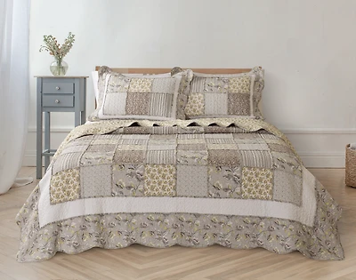 Ashland Cotton Quilt Set, Floral, Grey,
