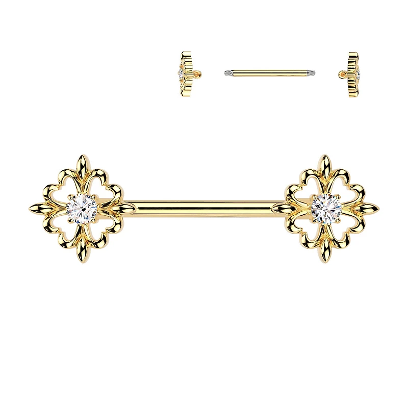 Heart Petals Crystal Nipple Barbell 14g in Coquitlam, BC