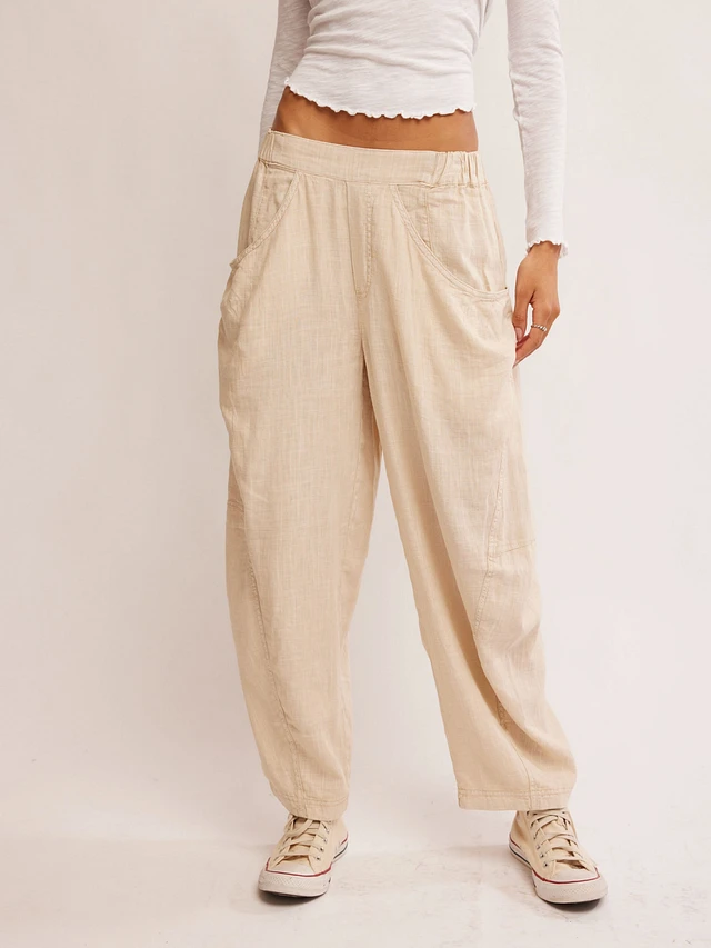 Baby Girl Heart Pocket Barrel Pants - Tan