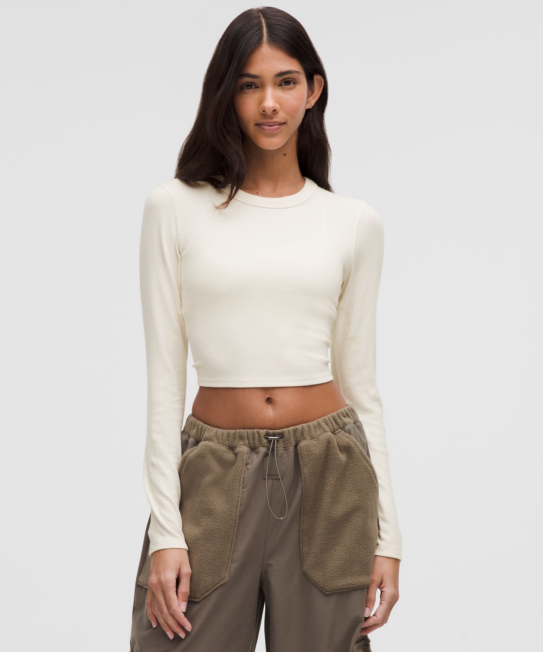 Super soft and loves to layer. This lightweight cropped long sleeve delivers just-right stretch and a second-skin fit that wears well on its own or as a base.