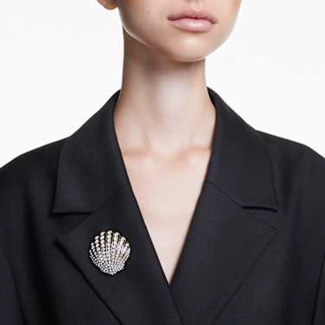 Idyllia brooch, Shell, White, Gold-tone plated by SWAROVSKI