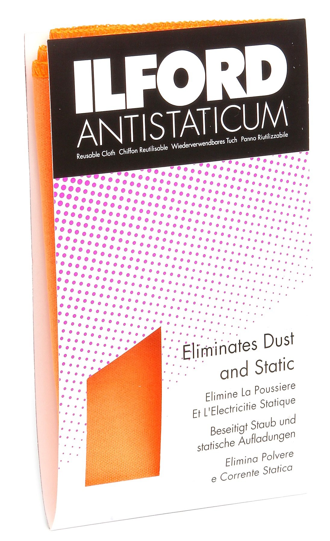ILFORD ANTISTATIC CLOTHS are designed to eliminate dust and static from photographic materials and equipment including cameras, lenses, filters, enlargers, negatives and glass carriers. They work by conducting charge away from the surface and do not leave a residue.