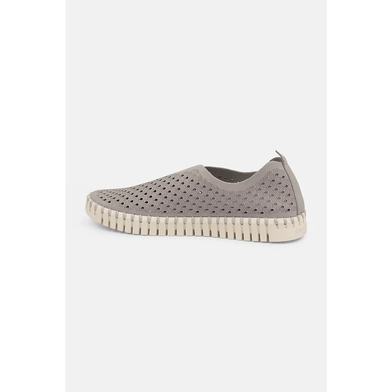 Loved for their signature comfort and timeless appeal, these flats are our bestselling icon — reimagined in a lightweight, feminine design. Crafted from recycled microfiber with a delicate laser-cut pattern, they offer effortless style with every step. The flexible Tulip outsole is stitched with colour-matched recycled thread using no glue, reflecting our thoughtful approach to design. Inside, the softly padded insole ensures all-day support, making these flats a go-to favourite season after season. 60% Nylon, 40% Polyurethane 75% Natural Rubber, 25% Recycled Rubber 60% EVA, 40% Pig Suede