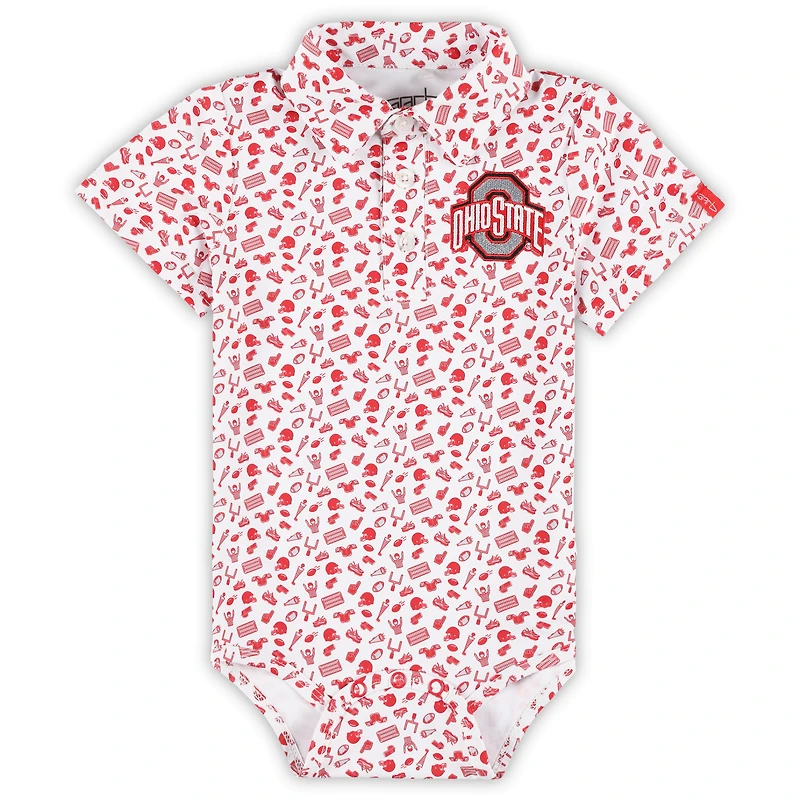 Infant Garb White Ohio State Buckeyes Tom Allover Print Performance Polo Bodysuit in Coquitlam, BC