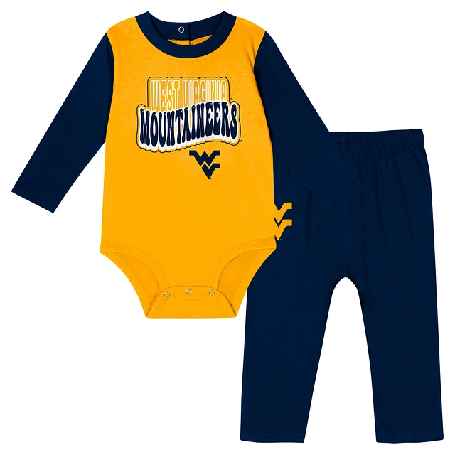 Infant Navy West Virginia Mountaineers Double Up Long Sleeve Bodysuit & Pant Set