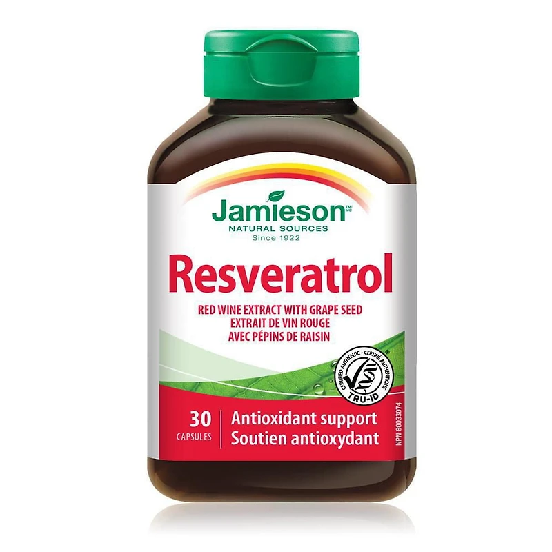 Jamieson Resveratrol contains grape seed fortified red wine extract that provides antioxidant support for the maintenance of cardiovascular health.