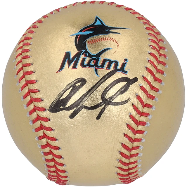 Jazz Chisholm Jr. Miami Marlins Autographed Gold Team Logo Baseball