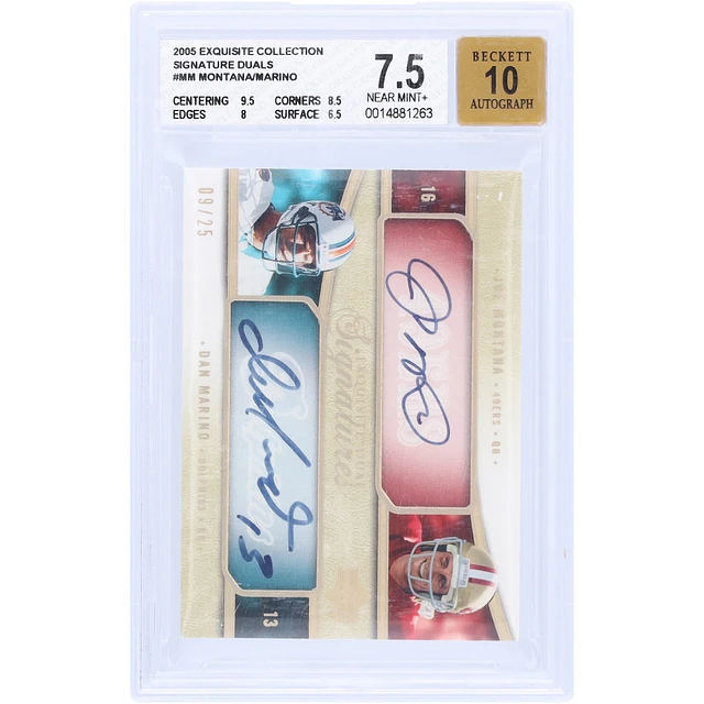 Joe Montana & Dan Marino Autographed 2005 Upper Deck Exquisite Collection Dual Auto #E2S-MM #9/25 BGS Authenticated 7.5/10 Card - 9.5,8.5,8,6.5 Subgrades