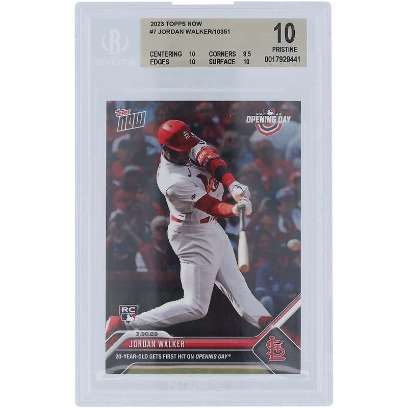Jordan Walker St. Louis Cardinals 2023 Topps Now First Hit on Opening Day 03.30.23 #7 BGS Authenticated 10 Card - 10,9.5,10,10 Subgrades