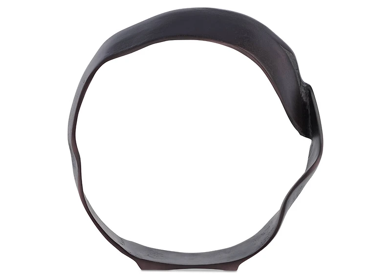 Our Jovi Sculpture showcases bent metalwork in an abstract form. It's expertly crafted from sturdy aluminum with an antiqued bronze