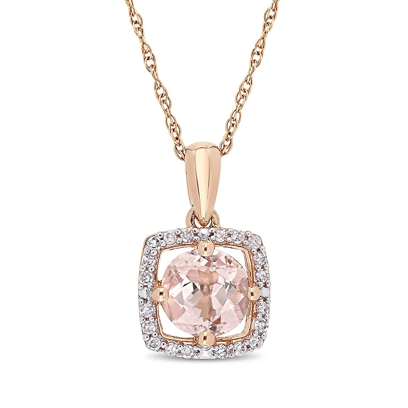 Julianna B 10K Pink Gold Diamond and Morganite Fashion Pendant with Chain