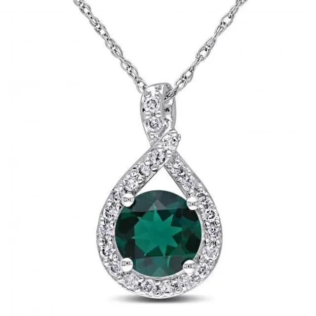 Julianna B 10K White Gold Created Emerald & 0.02CTW Diamond Pendant