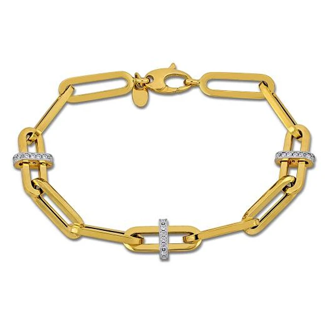Julianna B 14K Two Tone Gold Cubic Zirconia Rondelle Link 7.5" Bracelet