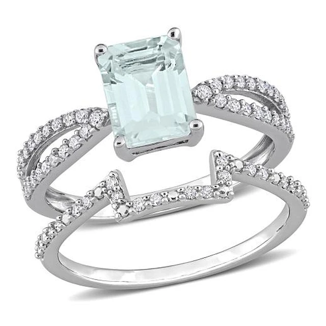 Julianna B 10K White Gold Aquamarine & Diamond Bridal Set