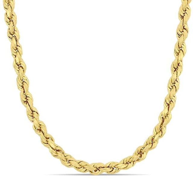 Miabella 14K Yellow Gold 4mm Rope Chain Necklace, 22"