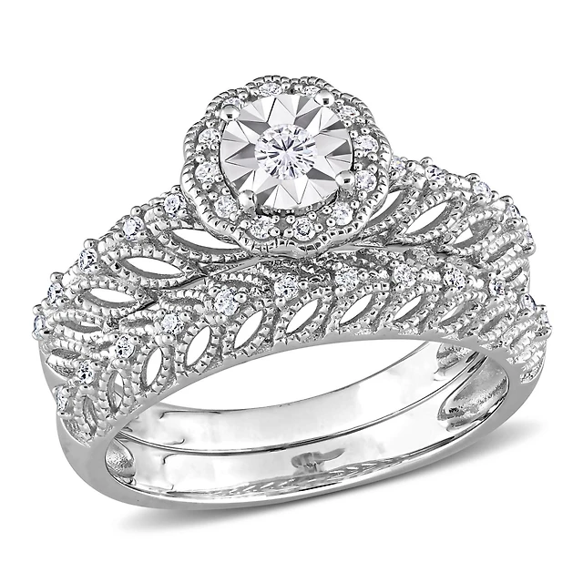 Julianna B Sterling Silver 0.20CTW Vintage Design Diamond Bridal Set