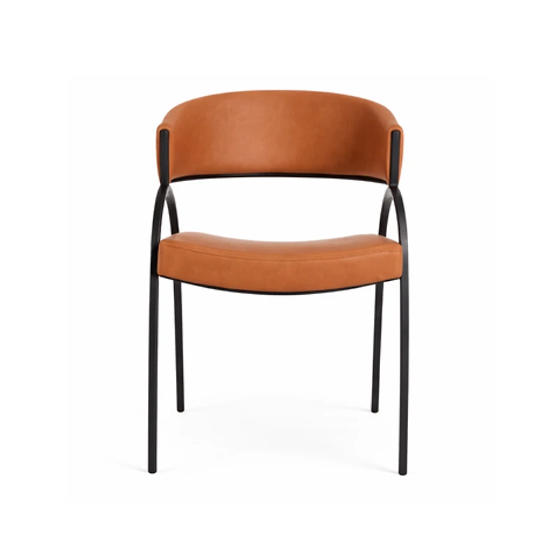 The Kara Dining Chair blends contemporary style with everyday comfort. Upholstered in rich cognac fabric and supported by a matte black iron frame, it adds warmth and elegance to any dining space. The generously padded seat and backrest offer a cozy experience, while the sleek silhouette complements modern interiors. With durable materials and a refined finish, this chair is ideal for both home and hospitality settings