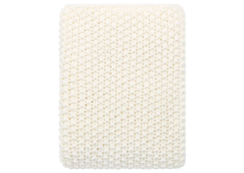 Our Kelvin Throw is crafted in a chunky knit that provides cozy warmth and comfortable weight, ideal for layering on sofas or beds. Made in a solid ivory tone and reversing to the same, it's an easy piece for everyday lounging and comfort.