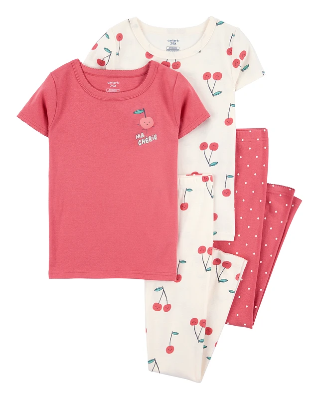 Toddler Girl Cherry & Heart 100% Cotton Snug Fit 4-Piece Pyjamas - Pink/White
