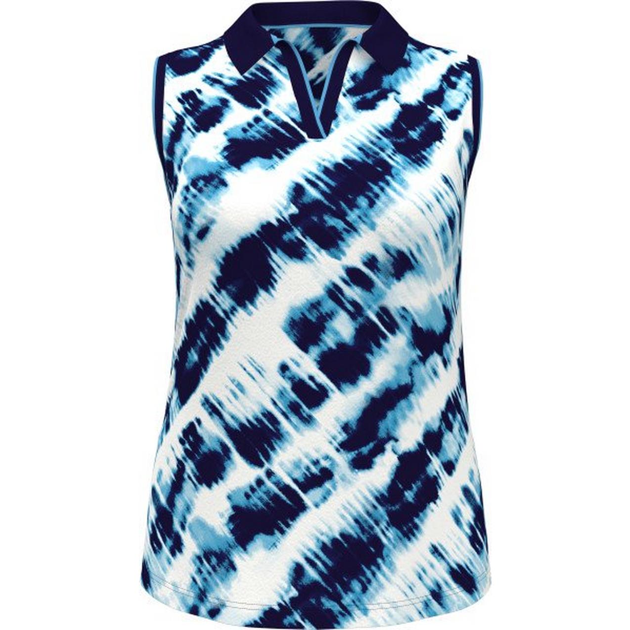 Women's Diagonal Tie Dye Print Sleeveless Polo