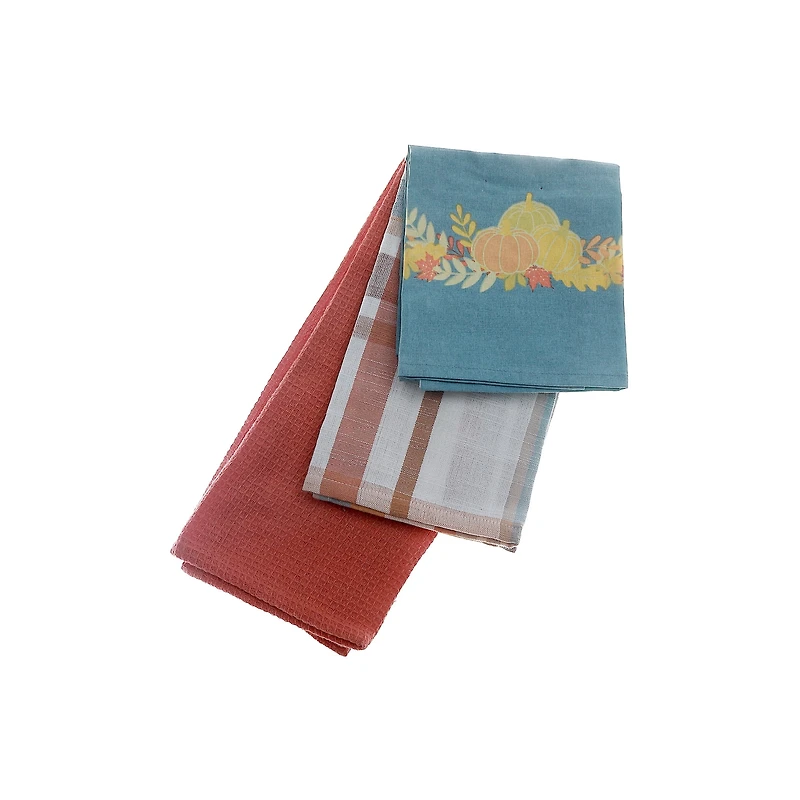 Kitchen Towel (Set Of 3 Pcs) (Plaid With Pumpkin Patch)