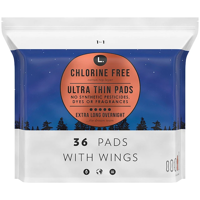 L. Chlorine Free Ultra Thin Pads with Wings Overnight - Extra Long - 36s