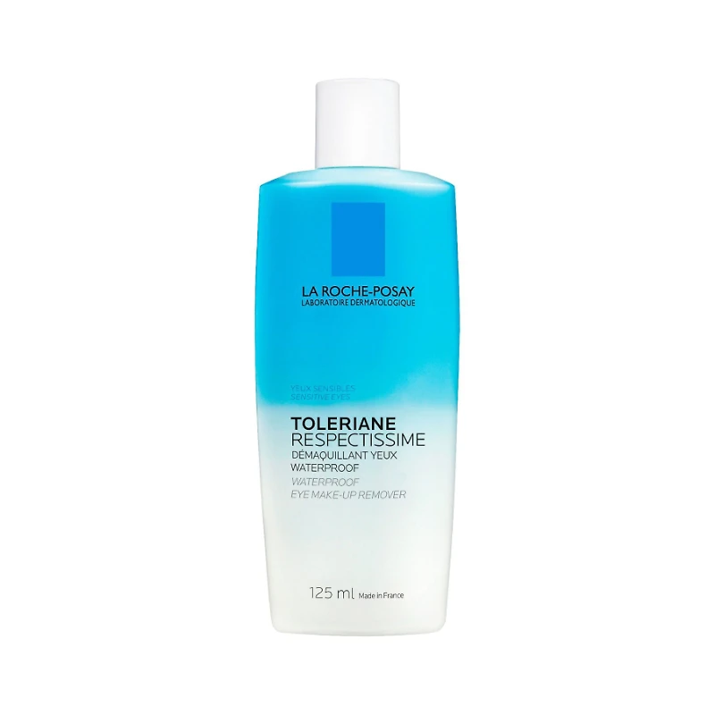 Paraben-free waterproof eye make-up remover. Gentle make-up remover for sensitive eyes. Specific for waterproof make-up.. Sensitive eyes. Water-resistant make-up. Bi-phase make-up remover, removes make-up instantaneously, effectively and without rubbing sensitive eyes. Fragrance-free, paraben-free. Strict formula charter to minimize the risk of intolerance.. Waterproof make-up is thoroughly removed. The sensitive skin around the eye area is not damaged | La Roche Posay Physio Cleansers La Roche-Posay Respectissime Waterproof Eye Make-Up Remover Size 125ml