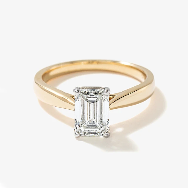 Lab Grown Emerald Cut Diamond Engagement Ring 14K Yellow Gold (1.50