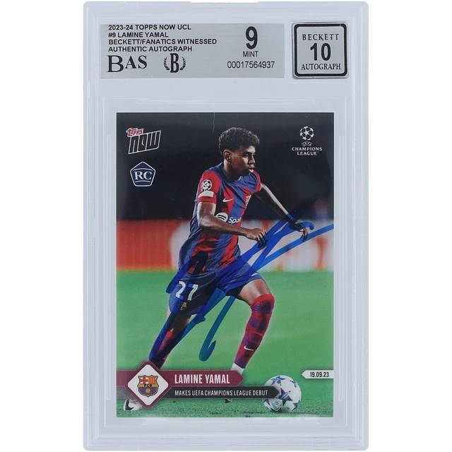 Lamine Yamal Barcelona Autographed 2023-24 Topps Now UCL Makes UEFA Champions League Debut #9 Beckett Fanatics Witnessed Authenticated 9/10 Rookie Card