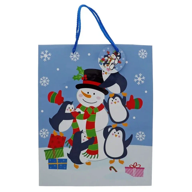 Holiday Gift Bag Assortment (8 Gift Bags: 3 Small 6", 3 Medium 9", 2 Large 13") Red, Green and Blue Ornaments, "Let It Snow," "Happy Holidays" with Snowman and Christmas Trees