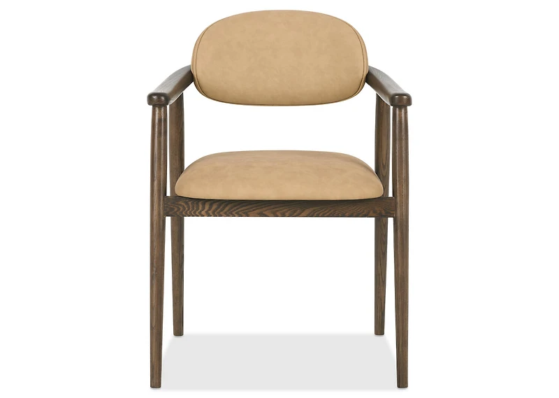 Our Lennox Dining Chair features a seat and back in soft-touch faux leather with a matte finish. The tan faux leather's subtle