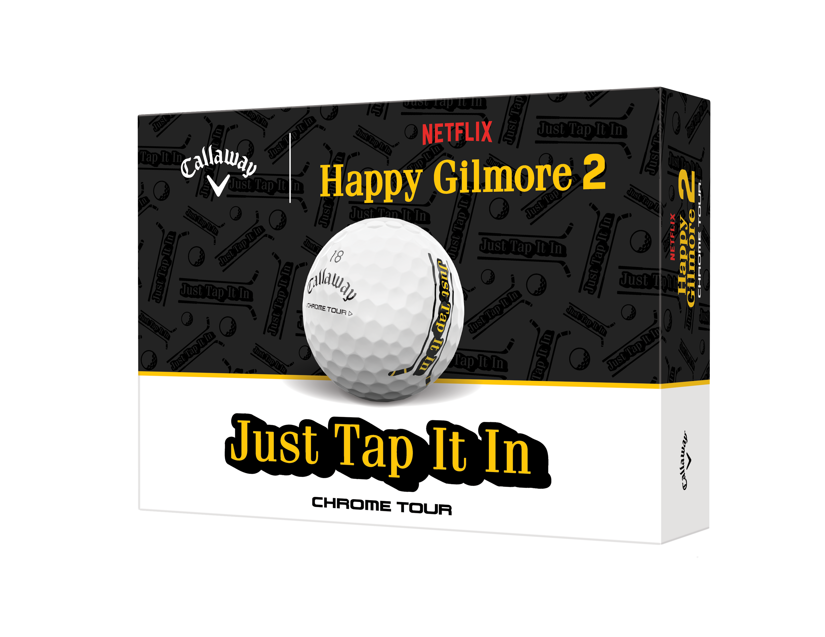 The Chrome Tour Happy Gilmore 2 “Just Tap It In” ball is here in time for the new Happy Gilmore 2 movie on Netflix, bringing one of the most unforgettable quotes in golf straight to your game. Designed for fans who know the green can be the most frustrating part of the round, this limited-edition ball pairs Tour-level performance with a side of attitude. With the quote printed within 2 hockey sticks as an alignment aid, it’s your reminder to stay cool, never miss home, and keep the rage in check.