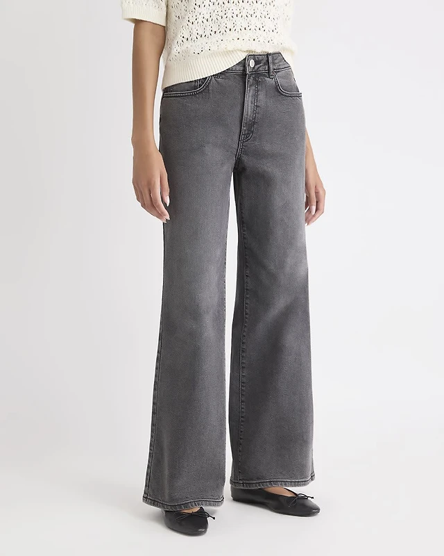 Long Dark Grey High-Rise Wide-Leg Jeans