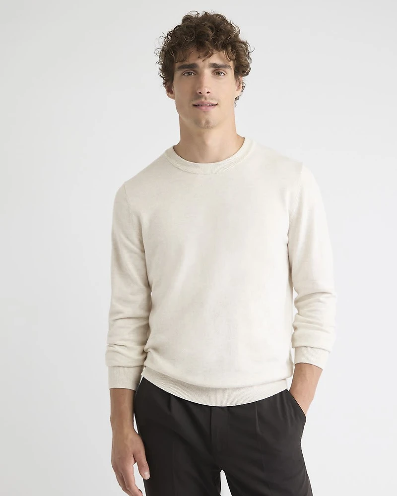 For a foolproof style this season, opt for this crew-neck sweater made in a comfortable knit that features organic cotton fibres that make this piece super soft. An essential piece to add to your wardrobe. - Stretch knit: contains 55% organic cotton* - Classic fit - Crew neckline - Long sleeves - Ribbed trims - 35" sleeve length from centre back (size M) - 27.5" front body length (size M) *Organic cotton means healthy soils that are maintained by using natural techniques, use of natural processes and elimination of dangerous chemicals, and cleaner water for people and wildlife. No pesticides are used which contributes to preserving our ecosystem balance and biodiversity.