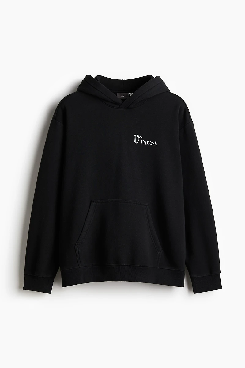 Loose-fit sweatshirt hoodie in medium weight cotton-blend fabric with a generous, but not oversized silhouette. Lined hood, dropped shoulders, long sleeves, and a kangaroo pocket. Ribbing at cuffs and hem. Soft, brushed inside.