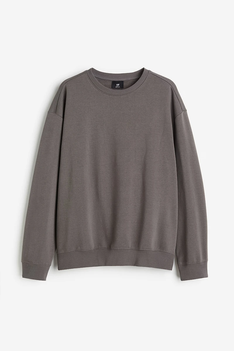Loose-fit sweatshirt in lightweight, cotton-blend fabric with a generous, but not oversized silhouette. Round, ribbed neck, dropped shoulders, and long sleeves. Wide ribbing at cuffs and hem. Soft, brushed inside.