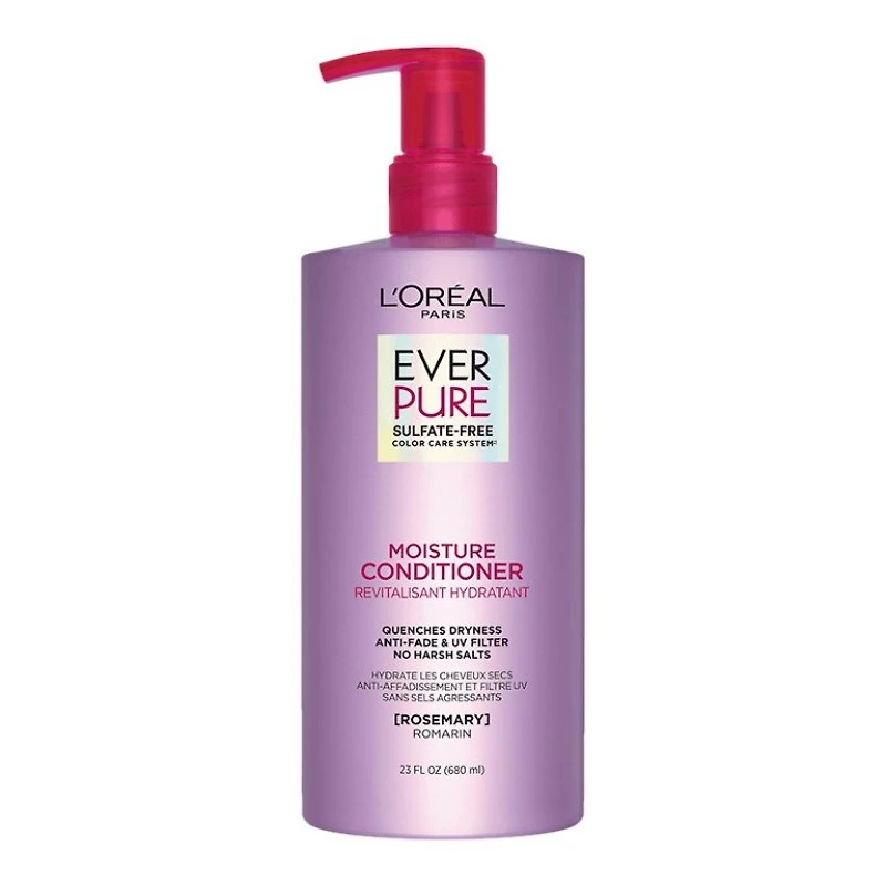 Care for your hair with this L'Oreal EverPure Moisture conditioner. Rosemary extract helps to restore and maintain the natural moisture balance of your hair, and the sulfate-free formula is gentle on your hair and does not strip its natural oils. The sophisticated scents of rose and cedar leave your hair smelling fresh all day. This L'Oreal EverPure Moisture conditioner is formulated without sulfates and parabens, making it safe for use with most hair types | Rca L'Oreal Paris EverPure Moisture Conditioner Size 680ml
